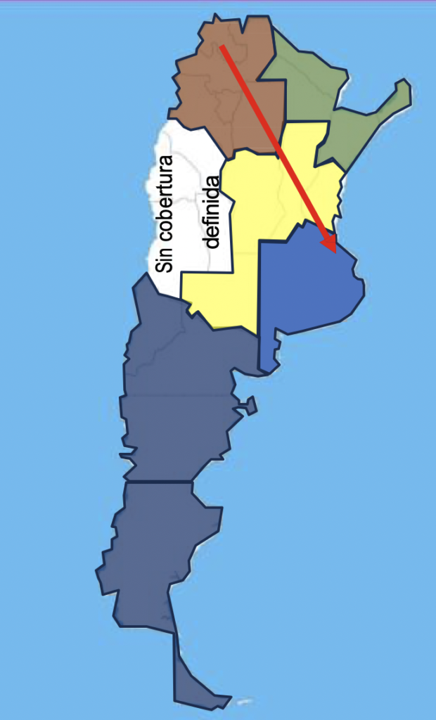 - NOA (Catamarca, Jujuy, Salta, Santiago del Estero, Tucumán)
