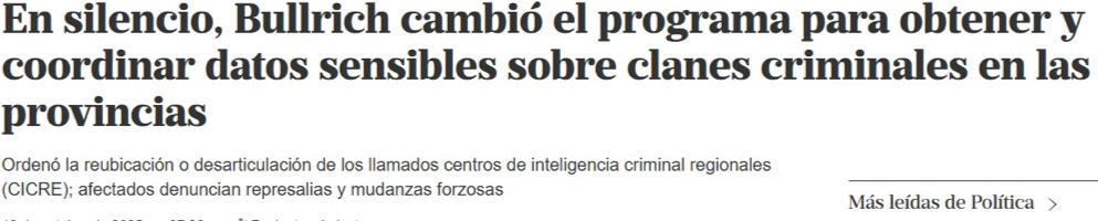 La publicación agrega “Extaoficialmente, dos funcionarios consultados defendieron la decisión. “Los CICRE se habían vuelto irrelevantes: no producían inteligencia criminal propia ni lograban que las fuerzas federales y provinciales coordinaran sus investigaciones, ni los operativos”. Incluso agrega que “Algunas fuentes académicas coinciden en esa mirada, como el experto de las universidades nacionales de Buenos Aires (UBA) y Quilmes (UNQ), Iván Poczynok. En un análisis que publicó en la Revista Científica General José María Córdova, en 2024, alertó que los CICRE registran problemas de articulación, recursos, normativa clara y resistencias institucionales”.