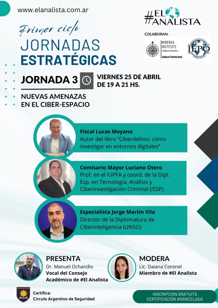 Los días 23, 24 y 25 de abril, vivimos tres jornadas claves para comprender los nuevos desafíos en seguridad, el crimen organizado y las amenazas en el ciberespacio. Desde #ElAnalista, reafirmamos nuestro compromiso con la formación y la generación de consensos estratégicos, porque la seguridad y la inteligencia son pilares para construir sociedades más resilientes.